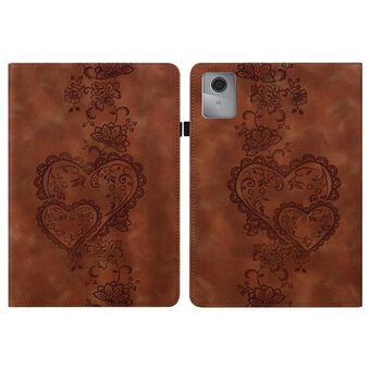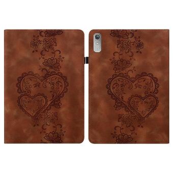 For Lenovo Tab Plus Love Hearts Embossed Leather Tablet Case(Brown)