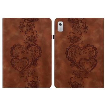 For Lenovo Tab M9 Love Hearts Embossed Leather Tablet Case(Brown)