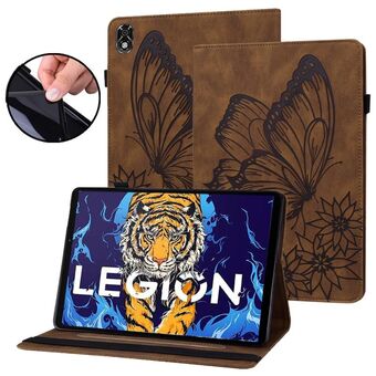 For Lenovo Legion Y700 Big Butterfly Embossed Leather Tablet Case(Brown)