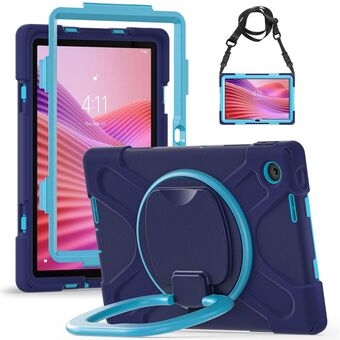 For Lenovo Tab 10.1 2025 / ZhaoYang K10c Silicone Hybrid PC Tablet Case with Holder & Shoulder Strap(Navy Blue Blue)