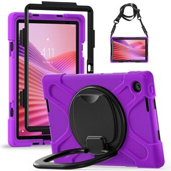 For Lenovo Tab 10.1 2025 / ZhaoYang K10c Silicone Hybrid PC Tablet Case with Holder & Shoulder Strap(Purple)