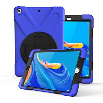 For Huawei MediaPad M6 10.8 360 Degree Rotation PC + Silicone Protective Case with Holder & Hand-strap(Dark Blue)