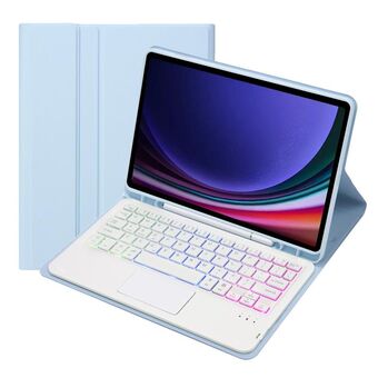 For Samsung Galaxy Tab S9 FE / 10 FE Candy Color Touch Backlight Bluetooth Keyboard Leather Tablet Case with Pen Holder(Ice Blue)