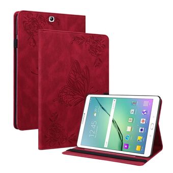 For Samsung Galaxy Tab S2 9.7 T810 T815 Butterfly Flower Embossed Leather Tablet Case(Red)