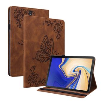 For Samsung Galaxy Tab S4 10.5 SM-T830 Butterfly Flower Embossed Leather Tablet Case(Brown)