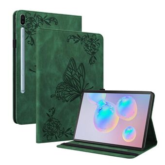 For Samsung Galaxy Tab S6 SM-T860/T865 Butterfly Flower Embossed Leather Tablet Case, without Pen(Green)