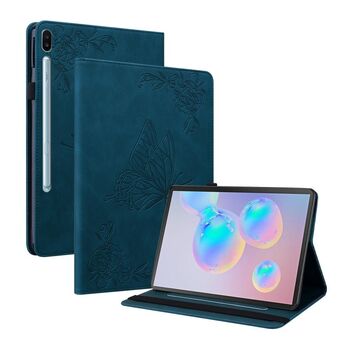 For Samsung Galaxy Tab S6 SM-T860/T865 Butterfly Flower Embossed Leather Tablet Case, without Pen(Blue)