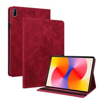 For Samsung Galaxy Tab S6 SM-T860/T865 Butterfly Flower Embossed Leather Tablet Case, without Pen(Red)