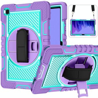 360 Degree Rotation Contrast Color Shockproof Silicone + PC Case with Holder & Hand Grip Strap & Shoulder Strap For Samsung Galaxy Tab A7 10.4 (2020) T500/T505 (Purple+Mint Green)