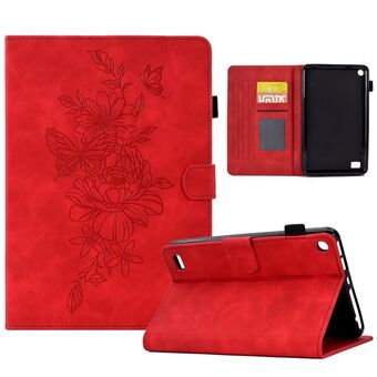 For Amazon Kindle Fire 7 2019/2017/2015 Peony Butterfly Embossed Leather Smart Tablet Case(Red)
