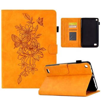 For Amazon Kindle Fire 7 2019/2017/2015 Peony Butterfly Embossed Leather Smart Tablet Case(Khaki)