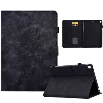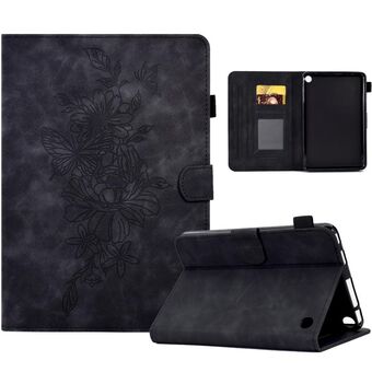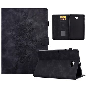 For Samsung Galaxy Tab A 10.1 2016 T580 Peony Butterfly Embossed Leather Smart Tablet Case(Black)