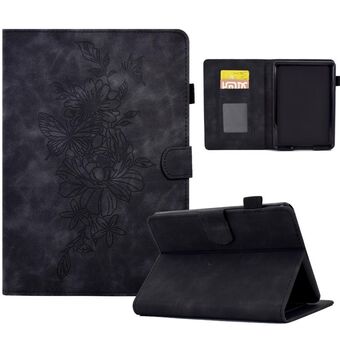 For Amazon Kindle Paperwhite 4/3/2/1 Peony Butterfly Embossed Leather Smart Tablet Case(Black)