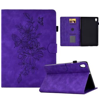 For Lenovo Tab P11 Peony Butterfly Embossed Leather Smart Tablet Case(Purple)