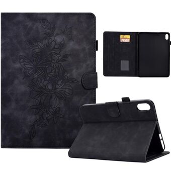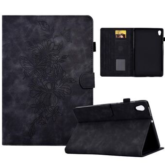 For Lenovo Tab P11 Peony Butterfly Embossed Leather Smart Tablet Case(Black)