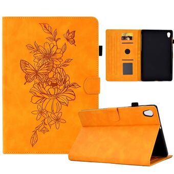 For Lenovo Tab P11 Peony Butterfly Embossed Leather Smart Tablet Case(Khaki)