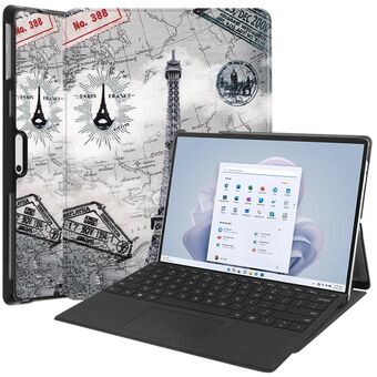 For Microsoft Surface Pro 9 JUNSUNMAY Custer Painted Stand Leather Tablet Case(Retro Tower) (JUNSUNMAY)