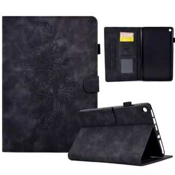 For Amazon Kindle Fire HD8 2020 Peony Butterfly Embossed Leather Smart Tablet Case(Black)