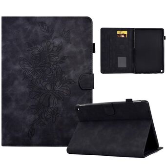 For Amazon Kindle Fire HD8 2018/2017/2016 Peony Butterfly Embossed Leather Smart Tablet Case(Black)