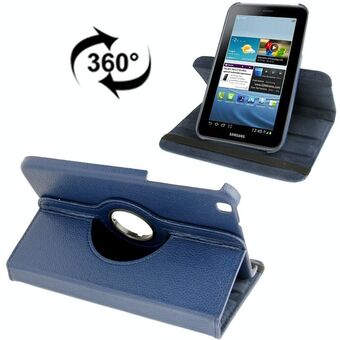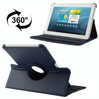 360 Degree Rotatable Litchi Texture Leather Case with Holder for Galaxy Tab 2 (10.1) / P5100(Dark Blue)