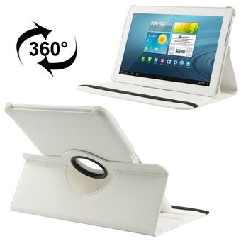 360 Degree Rotatable Litchi Texture Leather Case with Holder for Galaxy Tab 2 (10.1) / P5100(White)