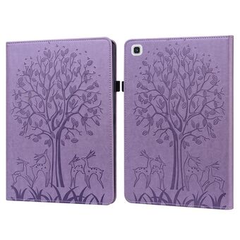 For Samsung Galaxy Tab A 10.1 2019 Tree & Deer Pattern Pressed Printing Horizontal Flip PU Leather Case with Holder & Card Slots(Purple)