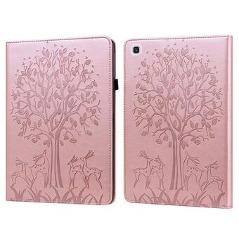 Tree & Deer Pattern Pressed Printing Horizontal Flip PU Leather Case with Holder & Card Slots & Sleep / Wake-up Function For Samsung Galaxy Tab A7 10.4 2020(Pink)