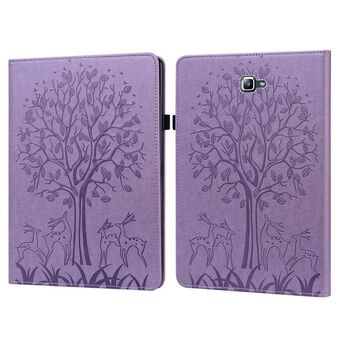 For Samsung Galaxy Tab A 10.1 2016 Tree & Deer Pattern Pressed Printing Horizontal Flip PU Leather Case with Holder & Card Slots(Purple)