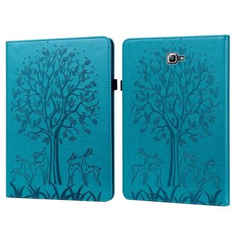 For Samsung Galaxy Tab A 10.1 2016 Tree & Deer Pattern Pressed Printing Horizontal Flip PU Leather Case with Holder & Card Slots(Blue)