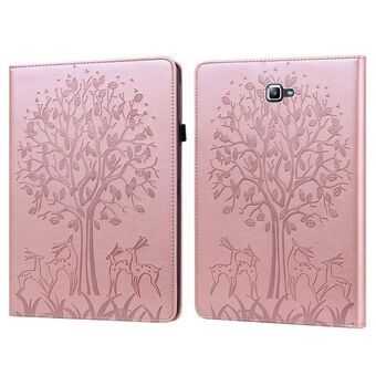 For Samsung Galaxy Tab A 10.1 2016 Tree & Deer Pattern Pressed Printing Horizontal Flip PU Leather Case with Holder & Card Slots(Pink)