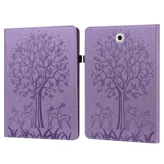 For Samsung Galaxy Tab S2 9.7 Tree & Deer Pattern Pressed Printing Horizontal Flip PU Leather Case with Holder & Card Slots(Purple)