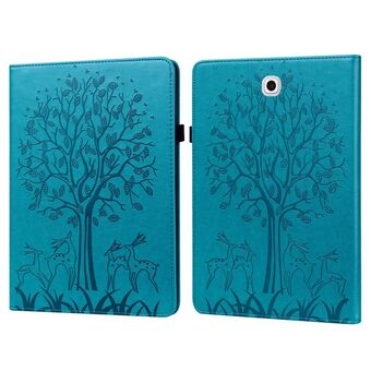 For Samsung Galaxy Tab S2 9.7 Tree & Deer Pattern Pressed Printing Horizontal Flip PU Leather Case with Holder & Card Slots(Blue)