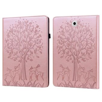 For Samsung Galaxy Tab S2 9.7 Tree & Deer Pattern Pressed Printing Horizontal Flip PU Leather Case with Holder & Card Slots(Pink)