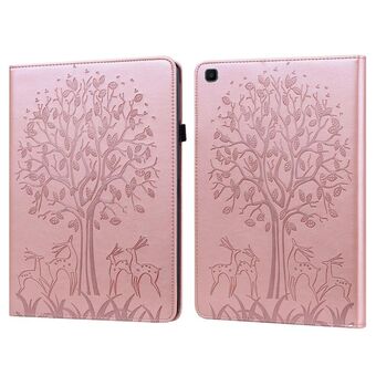 For Samsung Galaxy Tab A 10.1 2019 Tree & Deer Pattern Pressed Printing Horizontal Flip PU Leather Case with Holder & Card Slots(Pink)