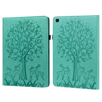 For Samsung Galaxy Tab A 10.1 2019 Tree & Deer Pattern Pressed Printing Horizontal Flip PU Leather Case with Holder & Card Slots(Green)