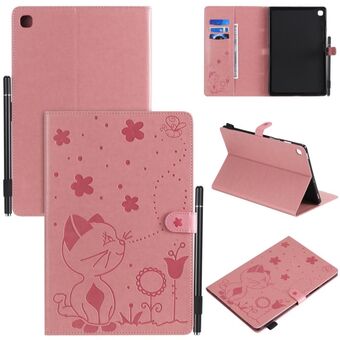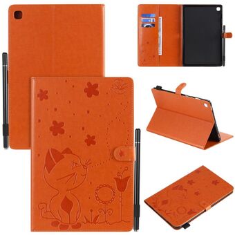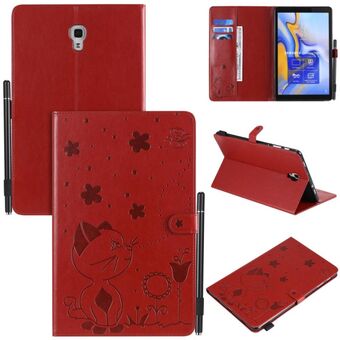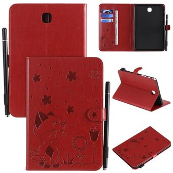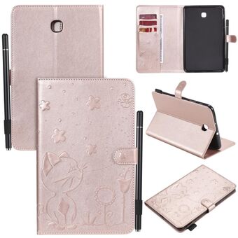 Για Samsung Galaxy Tab A8.0 (2018) T387 Θήκη δερμάτινη οριζόντια, αναδιπλούμενη, με σχέδιο ανάγλυφου Cat Bee, αντικραδασμική, προστατευτική για tablet PC με βάση στήριξης, θήκες για κάρτες, πορτοφόλι και θήκη για στυλό (Χρυσό Ρόδι).