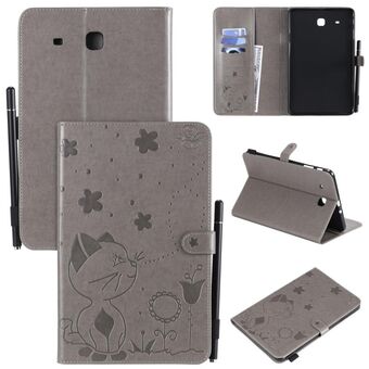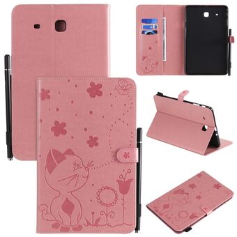 Θήκη δερμάτινη οριζόντια, με αναγλυφία σχέδιο "Cat Bee", αντικραδασμική, για Samsung Galaxy Tab E9.6 T560, με βάση στήριξης, θήκες για κάρτες, πορτοφόλι και θήκη για στυλό (Πράσινη).