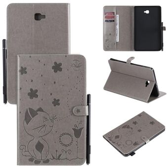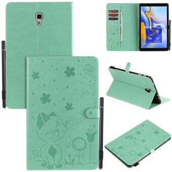 Για Samsung Galaxy Tab A10.1 (2016) T580 Θήκη δερμάτινη οριζόντια, αναδιπλούμενη, με σχέδιο ανάγλυφου Cat Bee, αντικραδασμική, προστατευτική για tablet PC με βάση στήριξης, θήκες για κάρτες, πορτοφόλι και θήκη για στυλό (Πράσινο)
