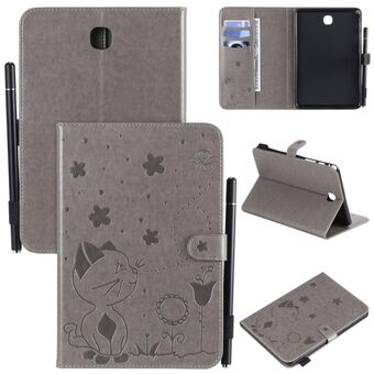 Για Samsung Galaxy Tab A8.0 (2015) T350 Θήκη δερμάτινη οριζόντια, αναδιπλούμενη, με σχέδιο ανάγλυφου Cat Bee, αντικραδασμική, προστατευτική για tablet PC με βάση στήριξης, θήκες για κάρτες, πορτοφόλι, θήκη για στυλό & λειτουργία αφύπνισης / ύπνου (Πράσινο