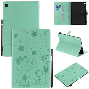 Για Samsung Galaxy Tab A10.1 (2019) T510 Θήκη δερμάτινη οριζόντια, αναδιπλούμενη, με σχέδιο ανάγλυφου Cat Bee, αντικραδασμική, προστατευτική για tablet PC με βάση στήριξης, θήκες για κάρτες, πορτοφόλι και υποδοχή για στυλό (Πράσινο)