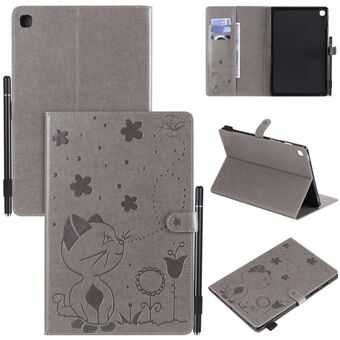 Θήκη δερμάτινη οριζόντια, με αναγλυφία Cat Bee, αντικραδασμική, για Samsung Galaxy Tab S5e T720 / T725, με βάση στήριξης, θήκες καρτών, πορτοφόλι, θήκη στυλό & λειτουργία αφύπνισης / ύπνου (Πράσινη)