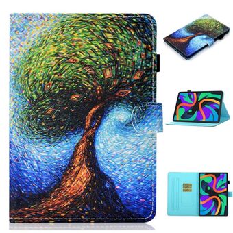 Θήκη Tablet Δερμάτινη με Εκτύπωση σε Ρελιέ με Μοτίβο Δέντρου & Ελαφιού για Huawei MatePad T 10s 10.1 ιντσών / T 10 9.7 ιντσών (Μωβ)