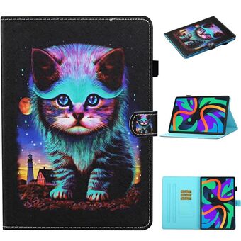 Θήκη Ταμπλέτας από Δέρμα με Έξυπνη Σύνδεση και Πολύχρωμη Σκίτσα/Ράψιμο για Lenovo Tab M11/ Xiaoxin Pad 11 2024 (Νυχτερινή Γάτα)
