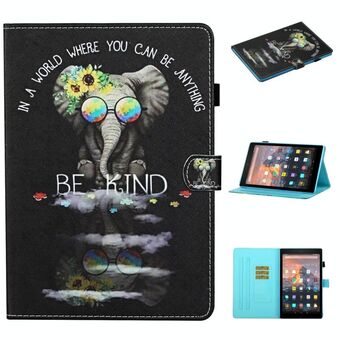 Για Kindle Fire HD8 2015 / 2016 / 2018 Χρωματιστά Σχέδιο ραφή οριζόντια Flip δερμάτινη θήκη με θήκη & υποδοχές καρτών & Λειτουργία ύπνου / αφύπνισης (εικονίδιο γυαλιών)