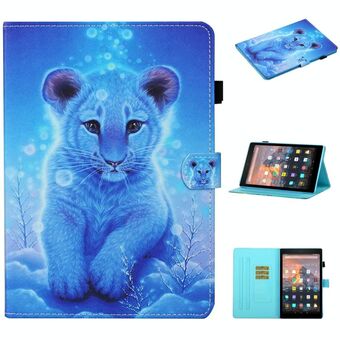 Για Kindle Fire HD8 2015 / 2016 / 2018 Χρωματιστά Σχέδιο ραφή οριζόντια Flip δερμάτινη θήκη με θήκη & υποδοχές καρτών & Λειτουργία ύπνου / αφύπνισης (Little Tiger)