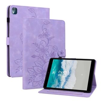 Για Nokia T21 Lily ανάγλυφη δερμάτινη θήκη tablet (μωβ)