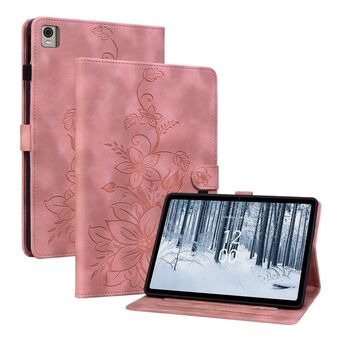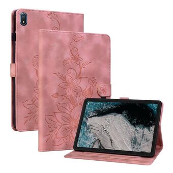 Για Nokia T21 Lily ανάγλυφη δερμάτινη θήκη tablet (ροζ)