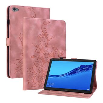 Για Huawei MediaPad M5 Lite 10 / C5 10.1 Lily ανάγλυφη δερμάτινη θήκη tablet (ροζ)