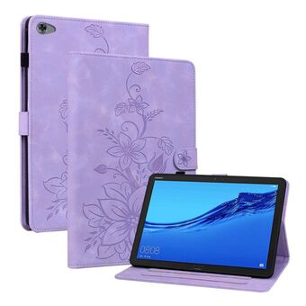 Για Huawei MediaPad M5 Lite 10 / C5 10.1 Lily ανάγλυφη δερμάτινη θήκη tablet (μωβ)