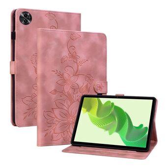 Για Realme Pad 10.4 Lily ανάγλυφη δερμάτινη θήκη tablet (ροζ)